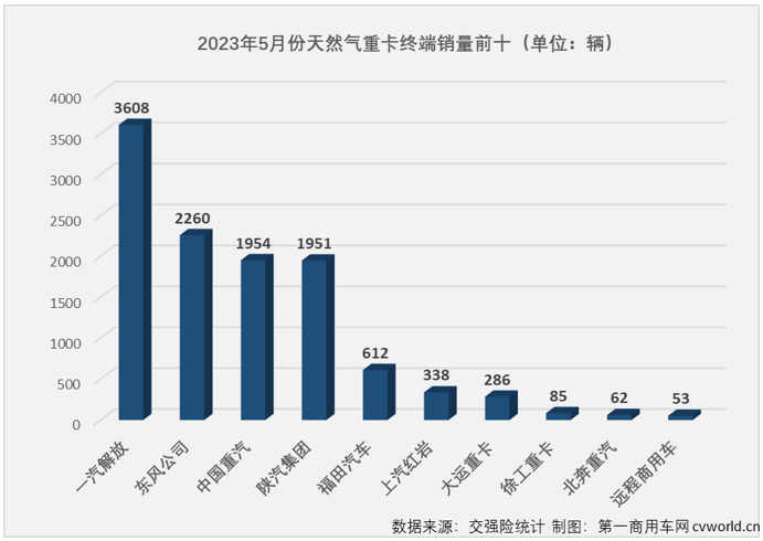 2023年5月國內(nèi)天然氣重卡終端銷量排行榜(單位:輛)