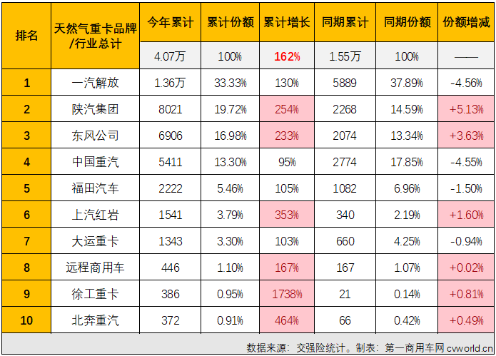 解放蟬聯(lián)銷冠 東風躍居次席 重汽/陜汽僅差3輛